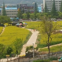 작은 공원 하나를 선물로 주고, 거대한 아파트단지로 둘러싸였다. 창원대로 건너편 소라아파트는